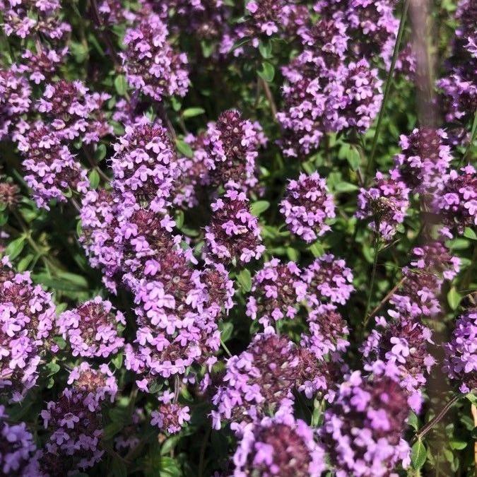 Kleine tijm is een laag, geurend plantje met lila bloei van juni tot september. Houdt van zon en droge grond, trekt volop bijen aan en is heerlijk aromatisch in de keuken. 💜🌿